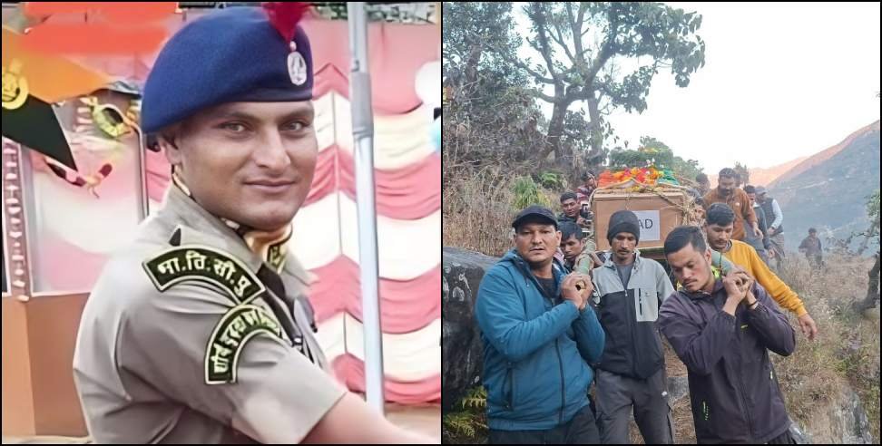 पिथौरागढ़: भारत-तिब्बत सीमा पुलिस (ITBP) की 7वीं वाहिनी मिर्थी में तैनात एक जवान की अज्ञात वाहन की चपेट में आने से दुखद मौत हो गई। मृतक जवान दो दिन की छुटी लेकर शादी समारोह में शामिल होने धारचूला जिला मुख्यालय के कुमौड़ क्षेत्र में गए थे। आज सुबह रांथी गांव के पैत्रिक घाट पर पूरे अन्य सम्मान के साथ उनका अंतिम संस्कार किया गया।