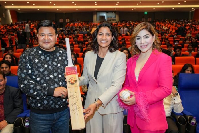 महिला क्रिकेट वर्ल्ड चैम्पियन टीम की खिलाड़ी स्नेह राणा का आज अपनी यूनिवर्सिटी ग्राफिक एरा पहुंचने पर फूलों की बारिश करके जोरदार स्वागत किया गया। विश्व विजेता क्रिकेटर स्नेह राणा ने कहा कि उन्होंने जब कैरियर स्टार्ट किया तब कोई नहीं मानता था कि महिला क्रिकेट में भी कैरियर हो सकता है। इसके बावजूद परिवार और मित्रों ने उन्हें आगे बढ़ने में पूरा सहयोग दिया।