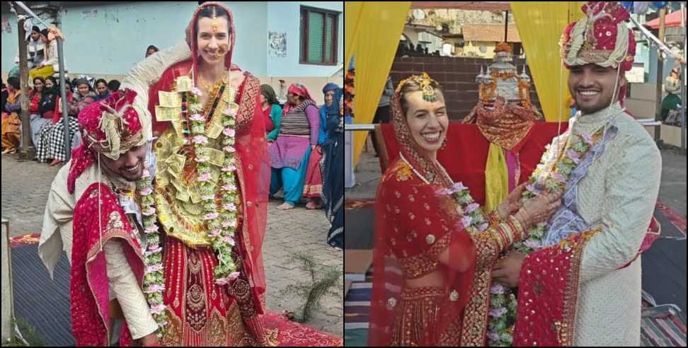 रुद्रप्रयाग जिले के अक्षय नेगी और लंदन की मेलोडी वासुकी नाग देवता मंदिर के प्रांगण में आयोजित किया गया, जहाँ देसीविदेशी मेहमानों की उपस्थिति में सांस्कृतिक विविधता का सुंदर संगम देखने को मिला। स्थानीय ग्रामीणों ने पारंपरिक तरीके से मेहमानों का स्वागत किया और विवाह स्थल को देवभूमि की परंपरा के अनुरूप सजाया। विवाह पूरे हिंदू शास्त्रों और गढ़वाली संस्कृति के अनुरूप संपन्न हुआ। विवाह की रस्में रुद्रप्रयाग के पंडित अजय नौटियाल और वधु पक्ष के पंडित राजीव नौटियाल ने विधिवत संपन्न कराईं। इस दौरान वासुकी नाग देवता के आशीर्वाद से पूरा कार्यक्रम मंगलमय वातावरण में पूर्ण हुआ।