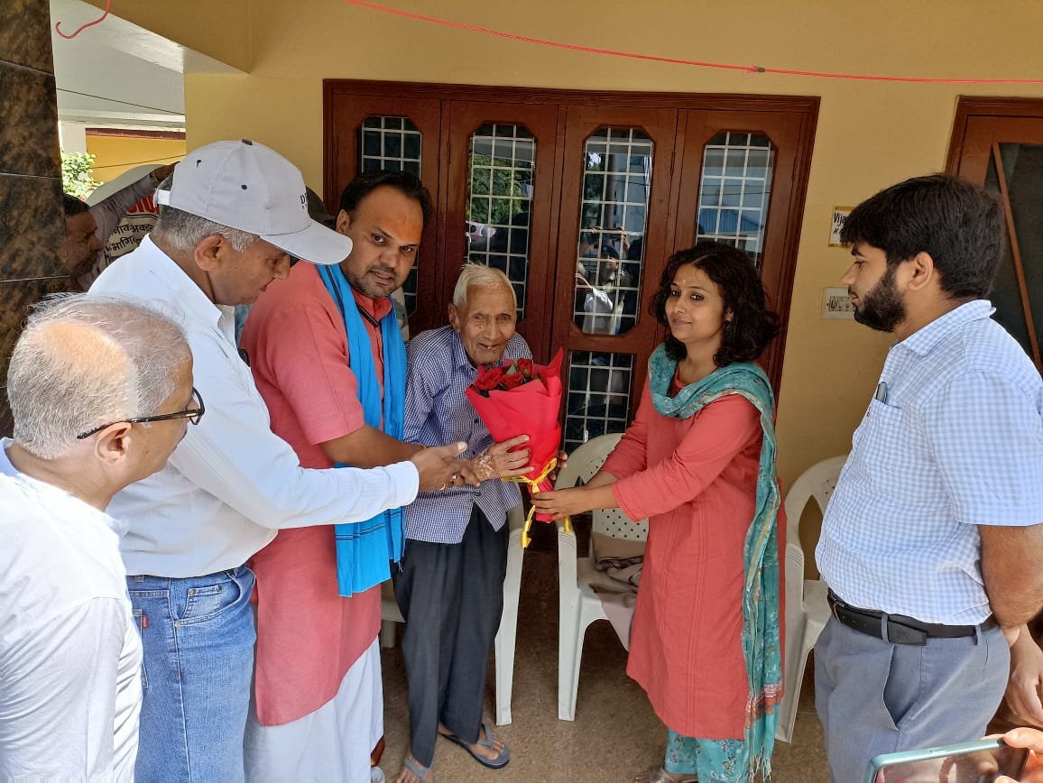 देहरादून। भारत निर्वाचन आयोग के निर्देशानुसार शतायु वर्ग के मतदाताओं की निर्वाचन में सहभागिता के दृष्टिगत 1 अक्टूबर को वृद्ध व्यक्तियों के लिए अंतर्राष्ट्रीय दिवस के अवसर पर झरना कमठान, मुख्य विकास अधिकारी उप जिला निर्वाचन अधिकारी, देहरादून झरना कमठान द्वारा 19-रायपुर विधानसभा क्षेत्रान्तर्गत 144 लाडपुर चक रायपुर मतदान केन्द्र के 100 वर्षीय मतदाता विजय सिंह पुत्र कल्याण सिंह को उनके घर पर जाकर पुष्पगुच्छ भेंटकर एवं शाल ओढ़ाकर सम्मानित किया गया, इस अवसर पर तहसीलदार देहरादून शादाब खान, बीएलओ रेखा रावत, बीएलओ सुपरवाईजर नीमा बडोनी तथा प्रकाश चन्द्र त्रिपाठी, सहायक जिला निर्वाचन अधिकारी, देहरादून उपस्थित थे। इसके साथ ही सहायक जिला निर्वाचन अधिकारी, देहरादून व तहसील सदर के स्टाफ द्वारा विधानसभा क्षेत्र धर्मपुर कैण्ट के अर्न्तगत मतदान केन्द्र विजयपार्क की सावित्री डोरा पत्नी श्यामलाल डोरा उम्र 102 वर्ष को उनके आवास ध् घर पर जाकर सम्मानित किया गया, इस अवसर पर बीएलओ संगीता भटट, बीएलओ सुपरवाईजर संजय चौहान भी उपस्थित रहे। सरोज 19 रायपुर भाग संख्या 95 बैंक कॉलोनी जयपुर कला को उनके घर पर जाकर पुष्पगुच्छ भेंटकर एवं शाल ओढ़ाकर सम्मानित किया गया, इसके अतिरिक्त शतायु वर्ष के 2 अन्य मतदाता भी चिन्हित किए गये थे जो वर्तमान में निवास पर नहीं होना अवगत कराया गया।
