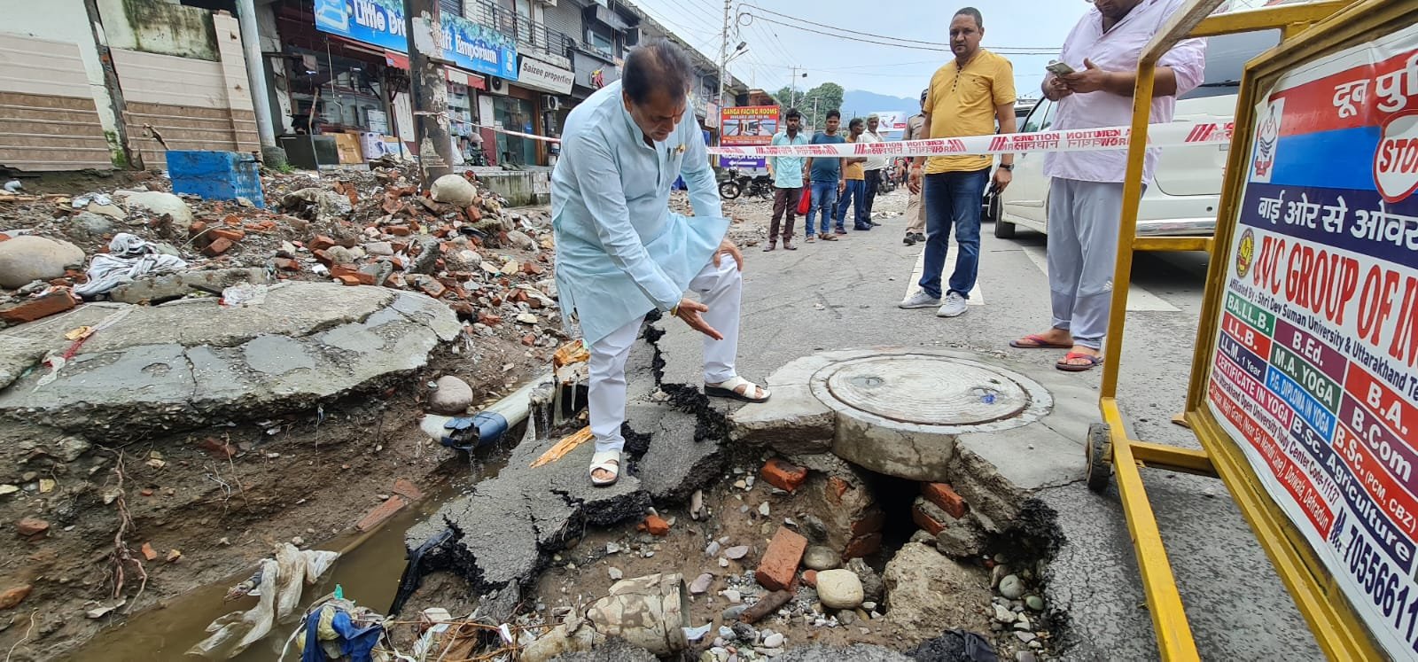 डॉ अग्रवाल ने गुमानीवाला भट्टो वाला मानसरोवर कॉलोनी, भट्टों वाला पुल सहित अमर ज्योति स्कूल के समीप भी जल भराव की स्थिति जानी। यहां पानी के समीप घर को बचाने के लिए जाल लगाने के निर्देश दिए। इसके बाद डॉ अग्रवाल ने कोयल घाटी के समीप मुख्य मार्ग के धंसने पर उप जिलाधिकारी ऋषिकेश को निर्देशित किया। उन्होंने कहा कि तत्काल मुख्य मार्ग को दुरुस्त कर यहाँ क्षतिग्रस्त विद्युत के बॉक्स को पुनः संचालित करने के लिए निर्देशित किया। इस मौके पर उप जिलाधिकारी सौरभ असवाल, सिंचाई विभाग के अधीक्षण अभियंता नामित रमोला, अधिशासी अभियंता दिनेश उनियाल, उपखंड अधिकारी अनुभव नौटियाल, रेंजर राजाजी आलोकी, प्रशिक्षु आईपीएस जितेंद्र मेहरा, क्षेत्र पंचायत सदस्य दिव्या बैलवाल, सागर गिरी, मानवेन्द्र कंडारी सहित स्थानीय लोग मौजूद रहे।