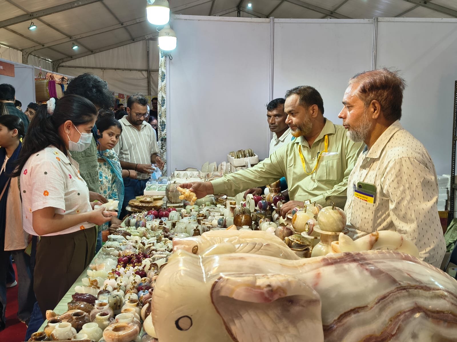 स्थानीय रेसकोर्स में विशाल ग्राउंड के में चल रहे इस आकर्षक एवं भव्यतम मेले में आज अफगानिस्तान के काबुल से आए ओनेक्स नेचुरल स्टोन स्टॉल पर विशाल पत्थरों पर अद्भुत नक्काशी करके बनाई गई आकर्षक वस्तुओं को देखने और खरीदारी के लिए बहुत ही अधिक उत्साह व उमंग खरीदारों में रही I